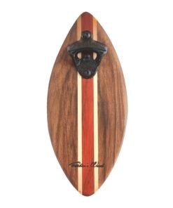 Décapsuleur mural à l’effigie du surf en bois massif de la collection OCEAN, avec sa bande signature Robin’s Wood.